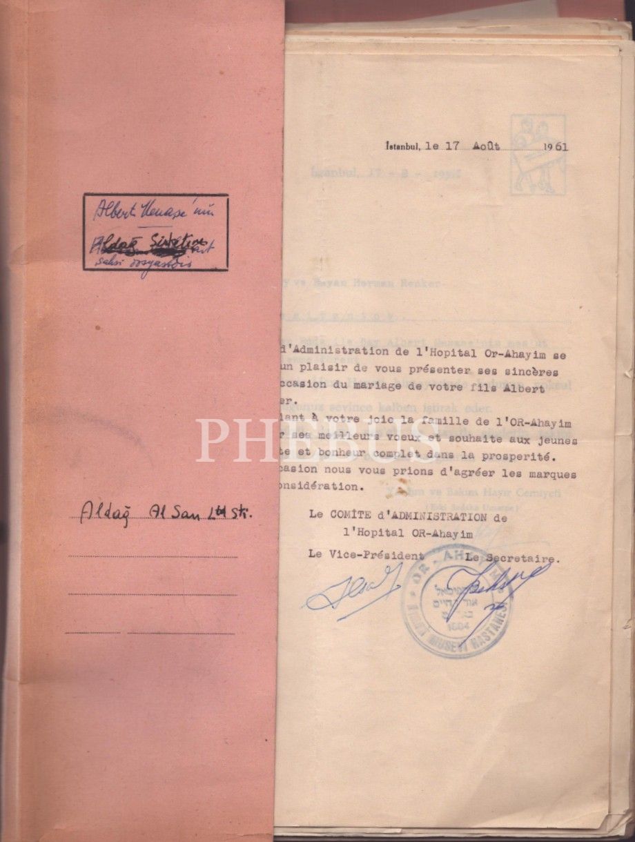 Dosya içerisinde İsrael oğlu Albert´e Lübnan´da faaliyet gösteren College du Sacre-Coeur tarafından gönderilen tebrik yazısı da bulunmaktadır.