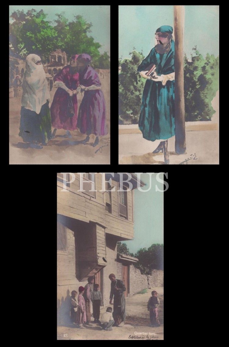 Lydia ve Lotte Blumenthal´e gönderilmiş, elle renklendirme kadın kartpostalları (3 adet)