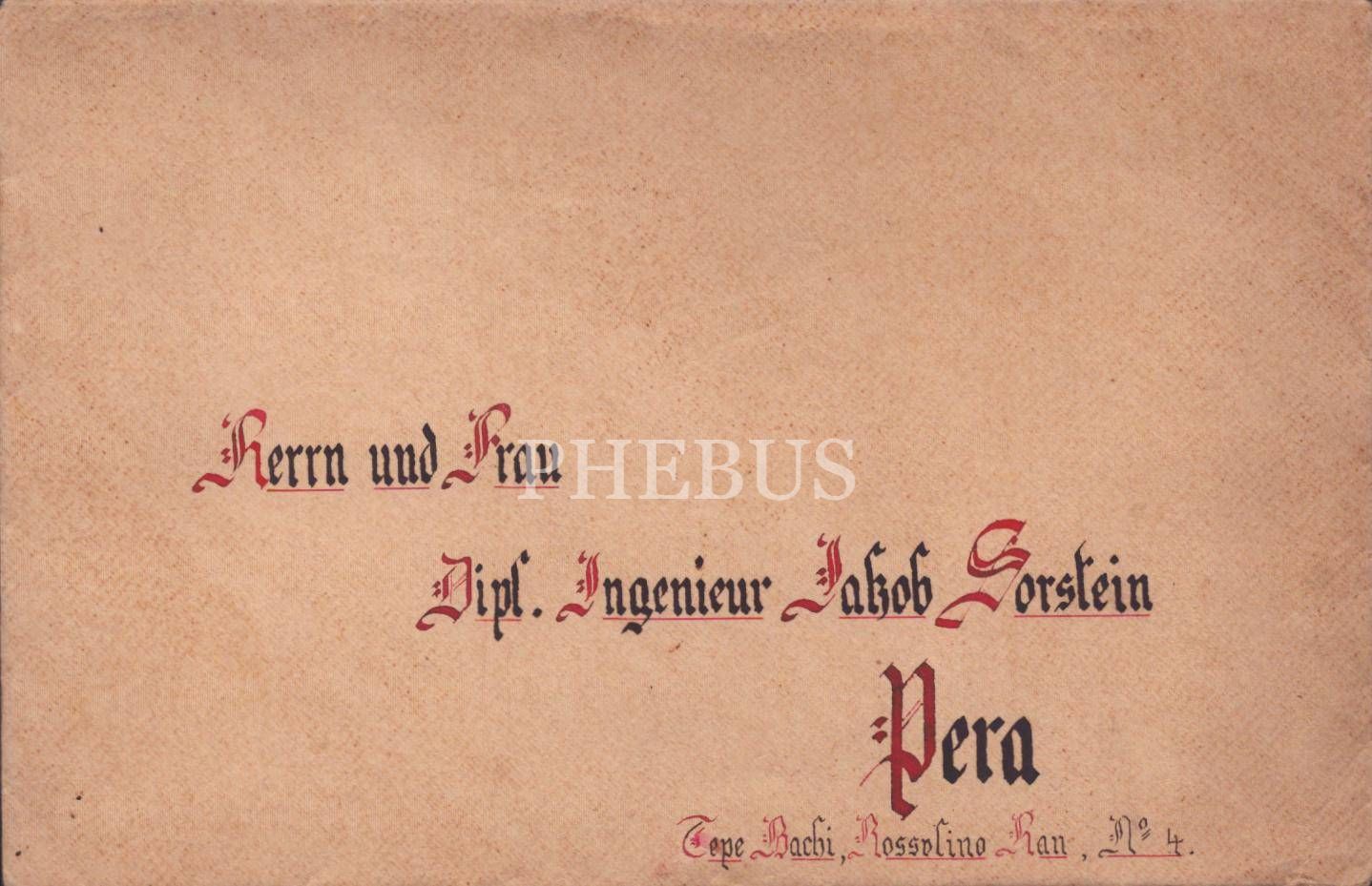 Bay ve Bayan Sorstein adına yazılmış dilek kartı içeren, gotik yazılı zarf, 12x18 cm