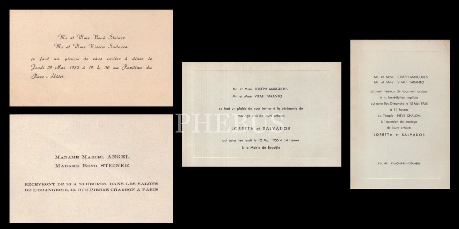 Fransızca muhtelif etkinlik ve düğün davetiyeleri (4 adet), ortalama: 9x12 cm
