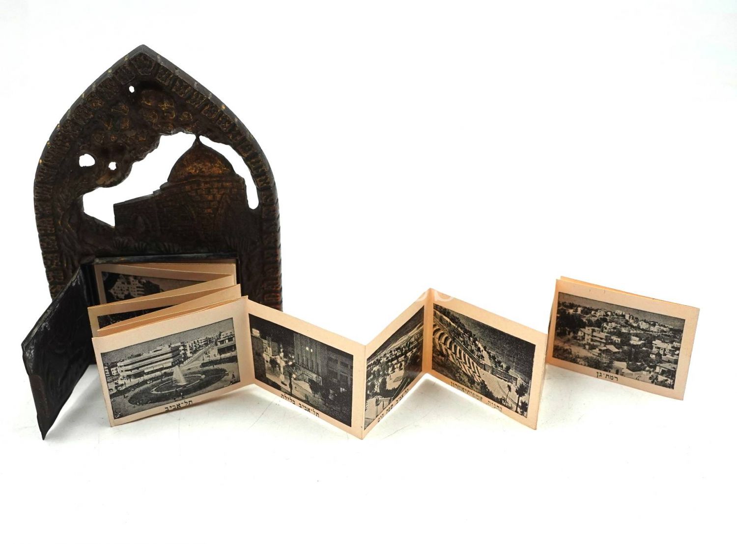 Kabartmalı, üzeri 2 lisanla "İsrael" yazılı, açılır kapaklı ve akordeon formunda İsrail hatırası 16 adet görsel içeren duvar süsü, 7x11 cm