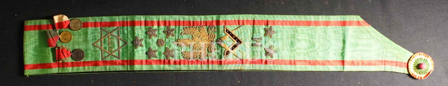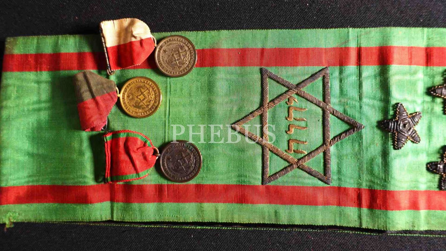 Masonik, Jacob Blumenthal´e ait, üzerinde 3 adet madalya bulunan altın sırma işçilikli, İbranice "Yahve" yazılı şerit ile "Israelitischer Bruderverein Depositeur " yazılı madalya