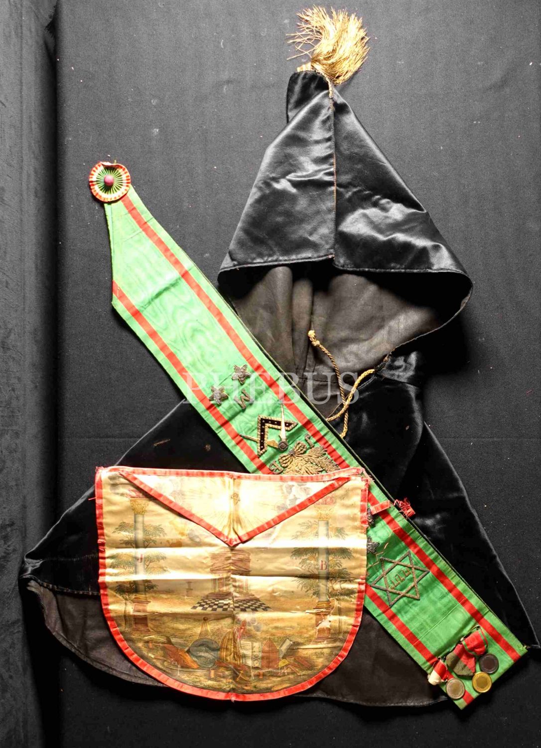 Takım içerinde bir adet siyah renk pelerin ve J.-B. inisiyali adına üretilmiş özel baskılı kumaş mevcuttur. Kumaş kenarları sökük olup merkezinde yırtık mevcuttur. (28 x 32 cm.)