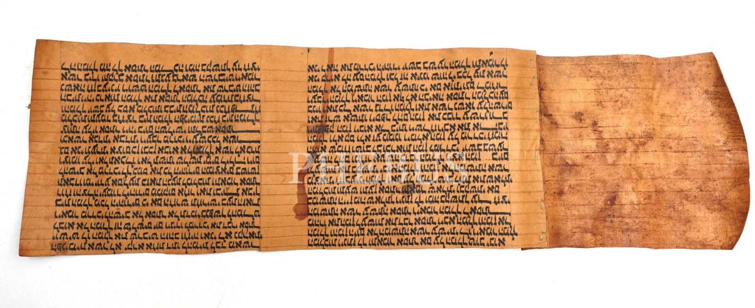 Deri üzeri orijinal el işi Megilat Ester (Ester Efsanesinin Bir Parçası), 15x51 cm