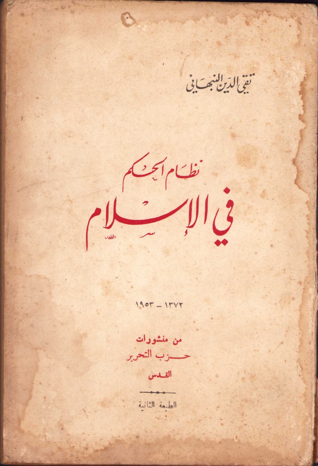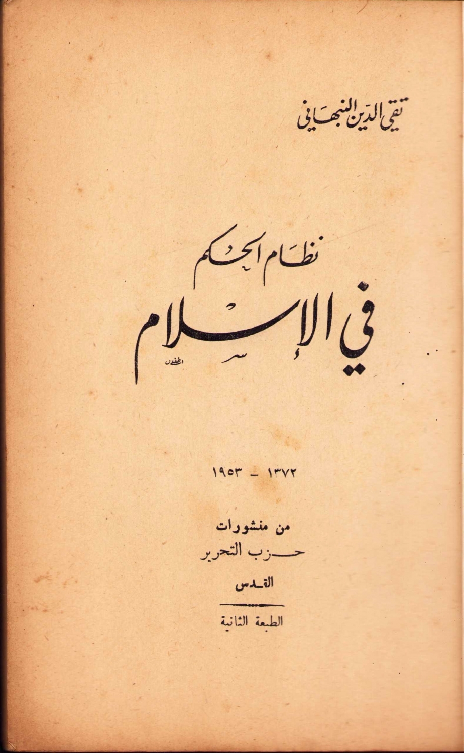 Arapça Takiyyuddin en-Nebhani İslami iktisat Nizamı, ikinci baskı, Kudüs baskı, 1953, cilt kirli, 121 sayfa, 14x22 cm.