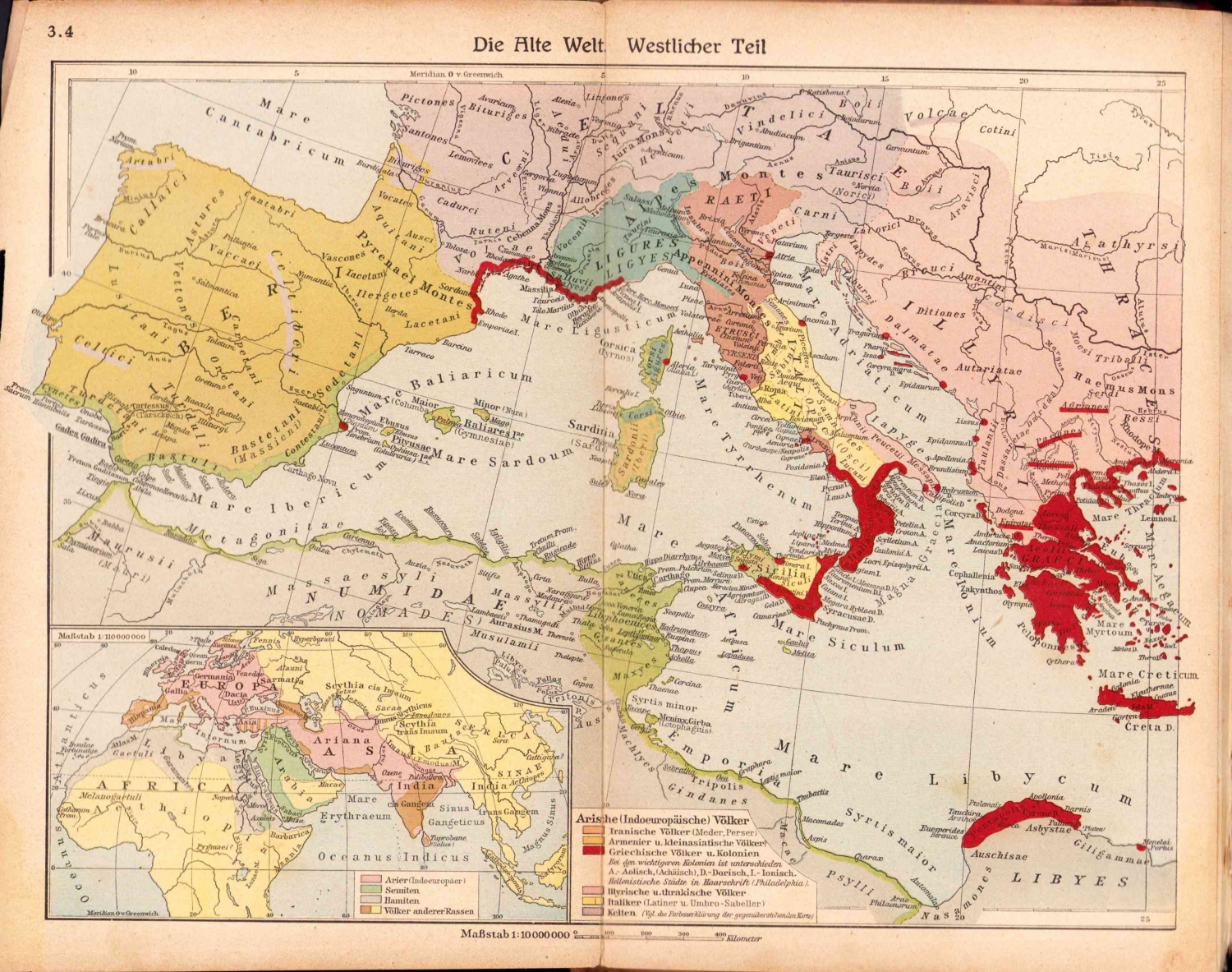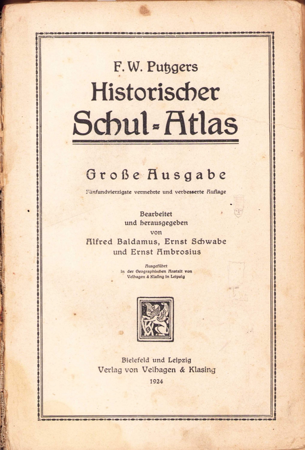 Historischer schul Atlas - Tarihsel okul atlası, Leipzig, 1924, 164 harita mevcut, cilt sırtı haliyle, 17x26 cm.