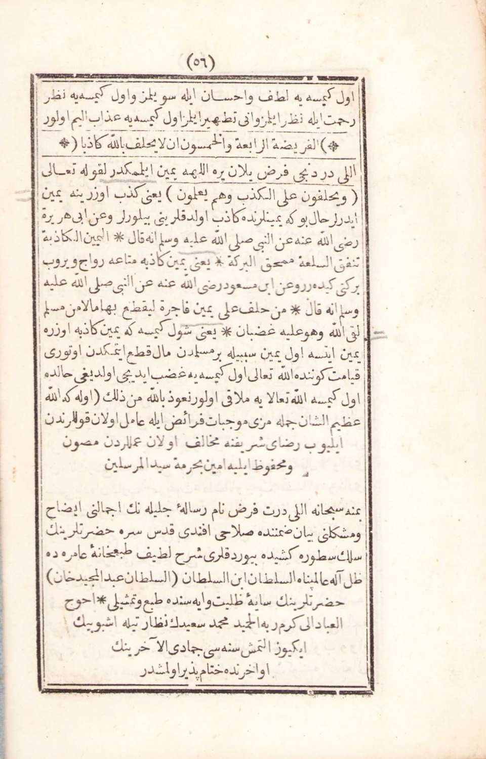 Osmanlıca Salah Efendi Kuddusi Sırra Hazretlerinin Elli Dört Farz Şerhi, 1260, 56 sayfa, 14x20 cm.