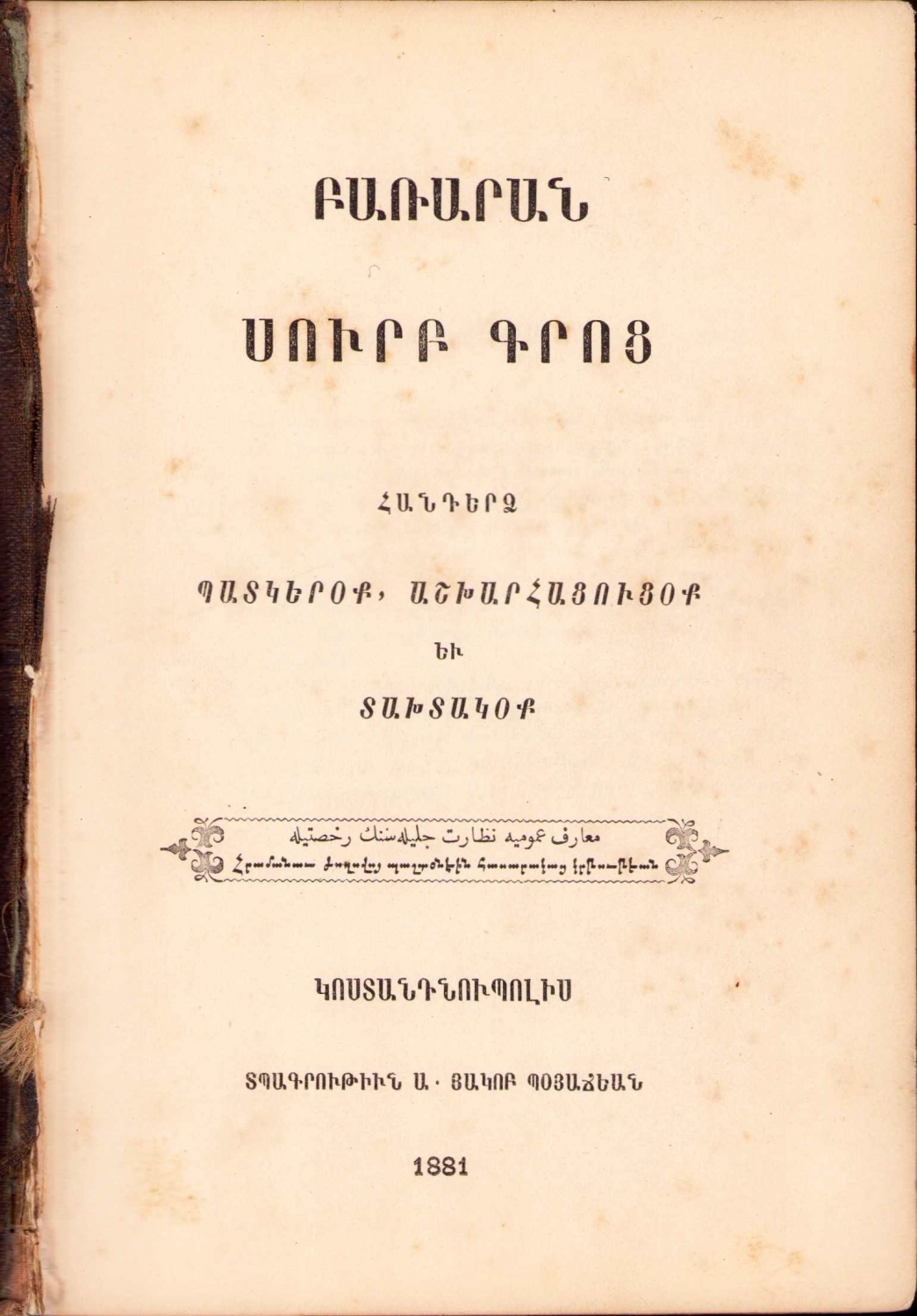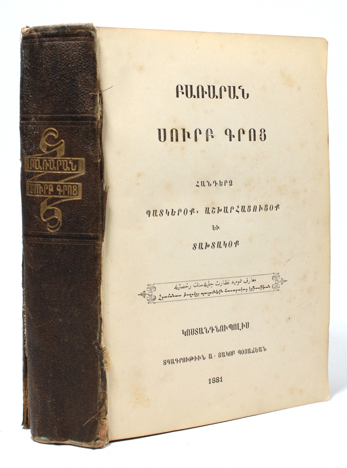 Ermenice Kitap, 1881, resimli, ön kapak eksik, 636 sayfa, 13x19 cm.