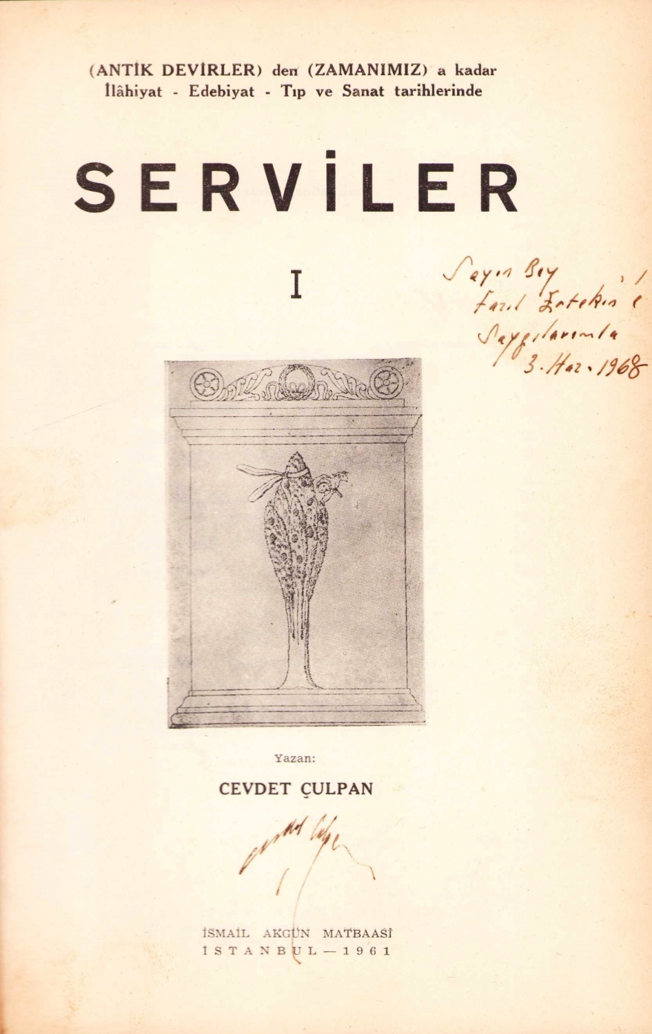 Serviler I, Cevdet Çulpan, İstanbul, 1961, yazarından imzalı, 140 resim, 150 sayfa, 16x24 cm.