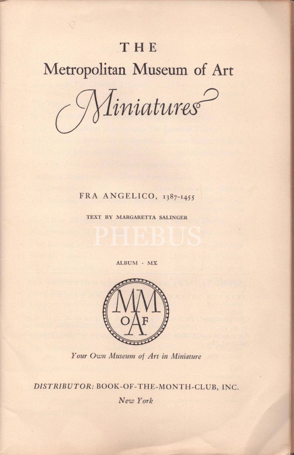 The Metropolitan Museum of Art Miniatures: FRA ANGELICO (1387-1455), Margaretta Salinger, New York - 1955, 32 sayfa, 17x25 cm