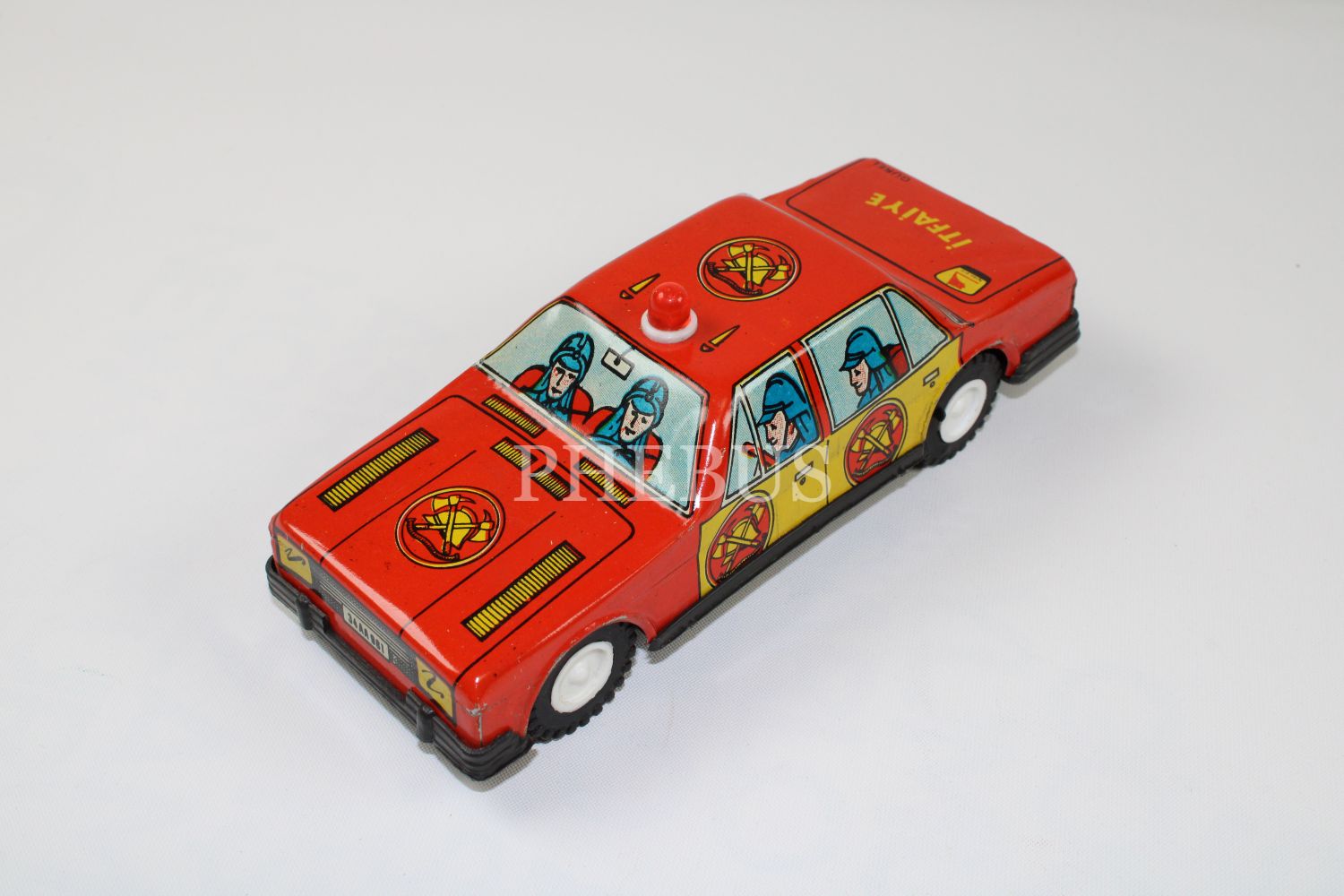 Gürel Fiat 131 İtfaiye Otoları, kendi kutusunda, sürtmeli mekanizmalı, çil durumda yerli teneke oyuncak