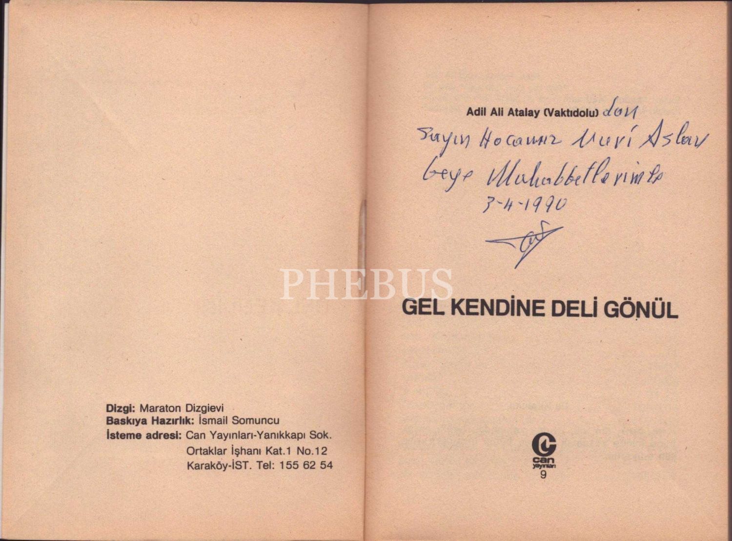 Adil Ali Atalay (Vaktıdolu)´dan ithaflı ve imzalı GEL KENDİNE DELİ GÖNÜL, Can Yayınları, 238 sayfa, 13x19 cm