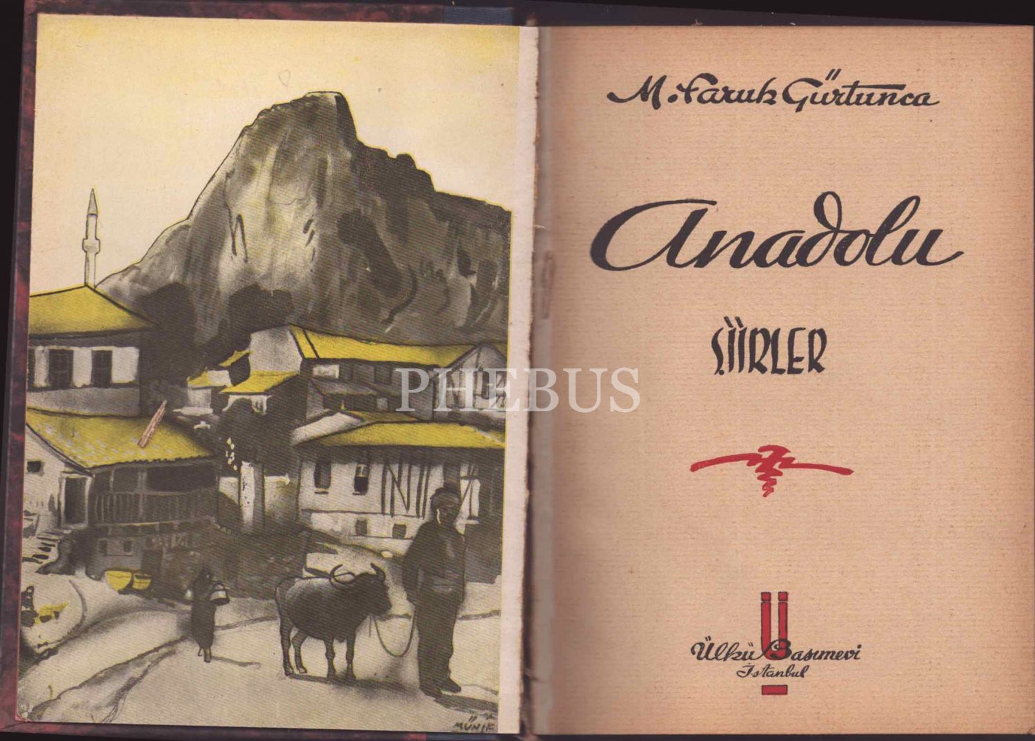 M. Faruk Gürtunca´dan ithaflı ve imzalı ANADOLU (ŞİİRLER), Ülkü Basımevi, İstanbul - 1939, 278 sayfa, 14x20 cm