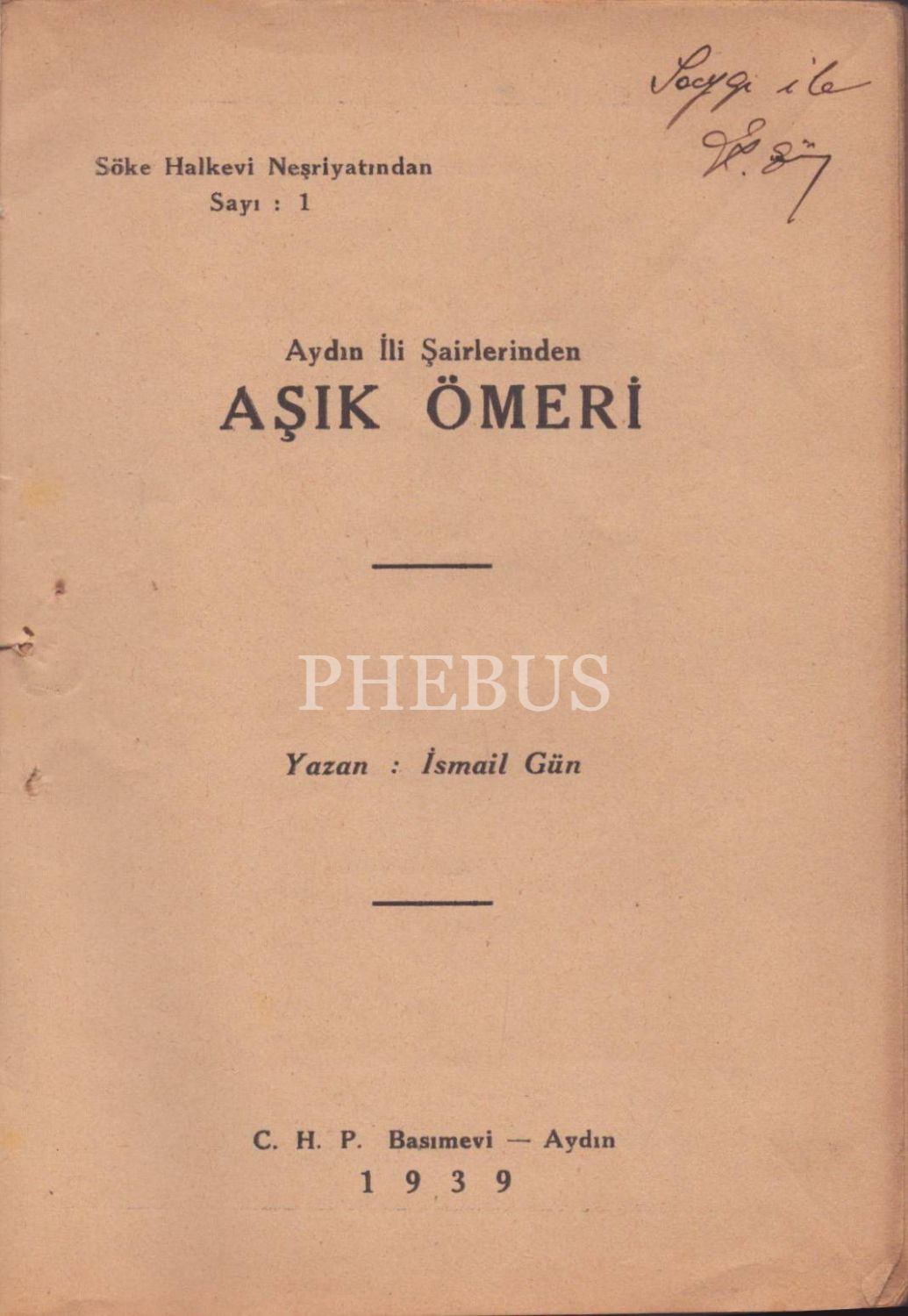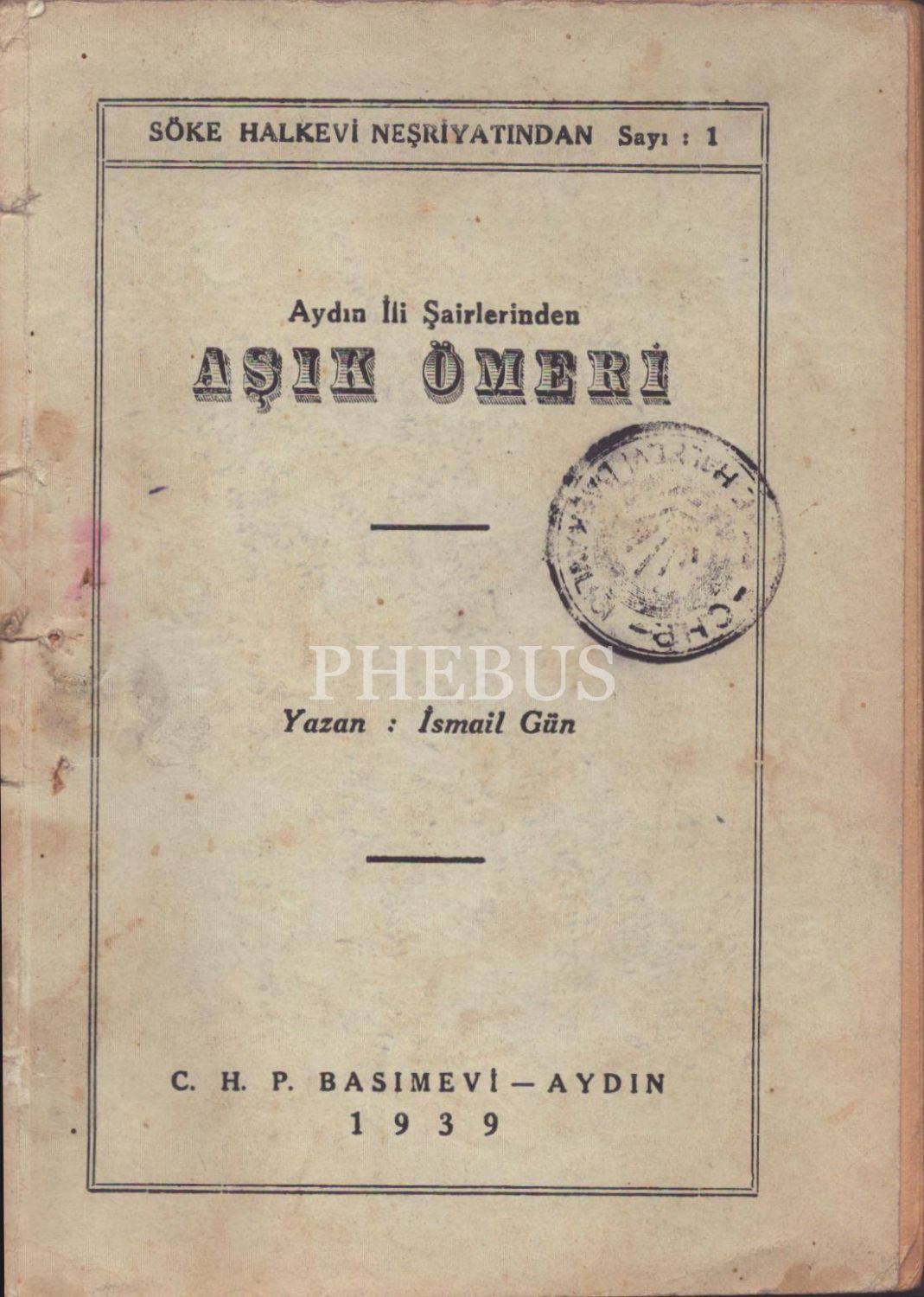 İsmail Gün´den imzalı AYDIN İLİ ŞAİRLERİNDEN AŞIK ÖMERİ, C.H.P. Basımevi, Aydın - 1939, 45 sayfa, 14x20 cm