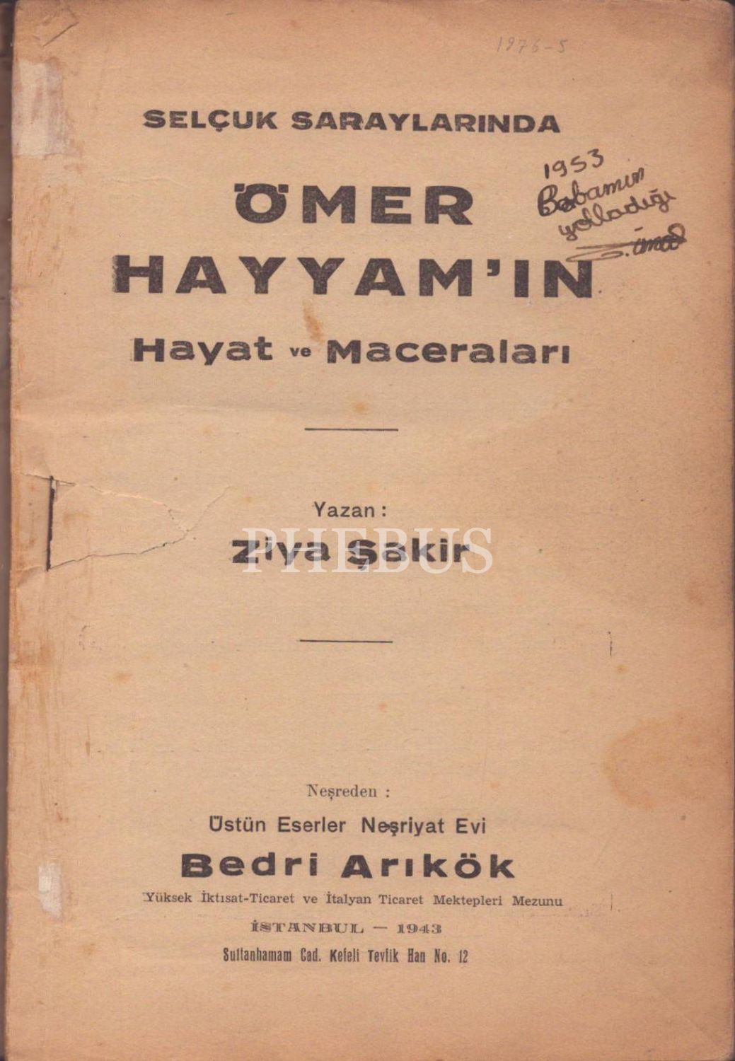SELÇUK SARAYLARINDA ÖMER HAYYAM´IN HAYAT VE MACERALARI, Ziya Şakir, Üstün Eserler Neşriyat Evi (Bedri Arıkök), İstanbul - 1943, 112 sayfa, 14x20 cm