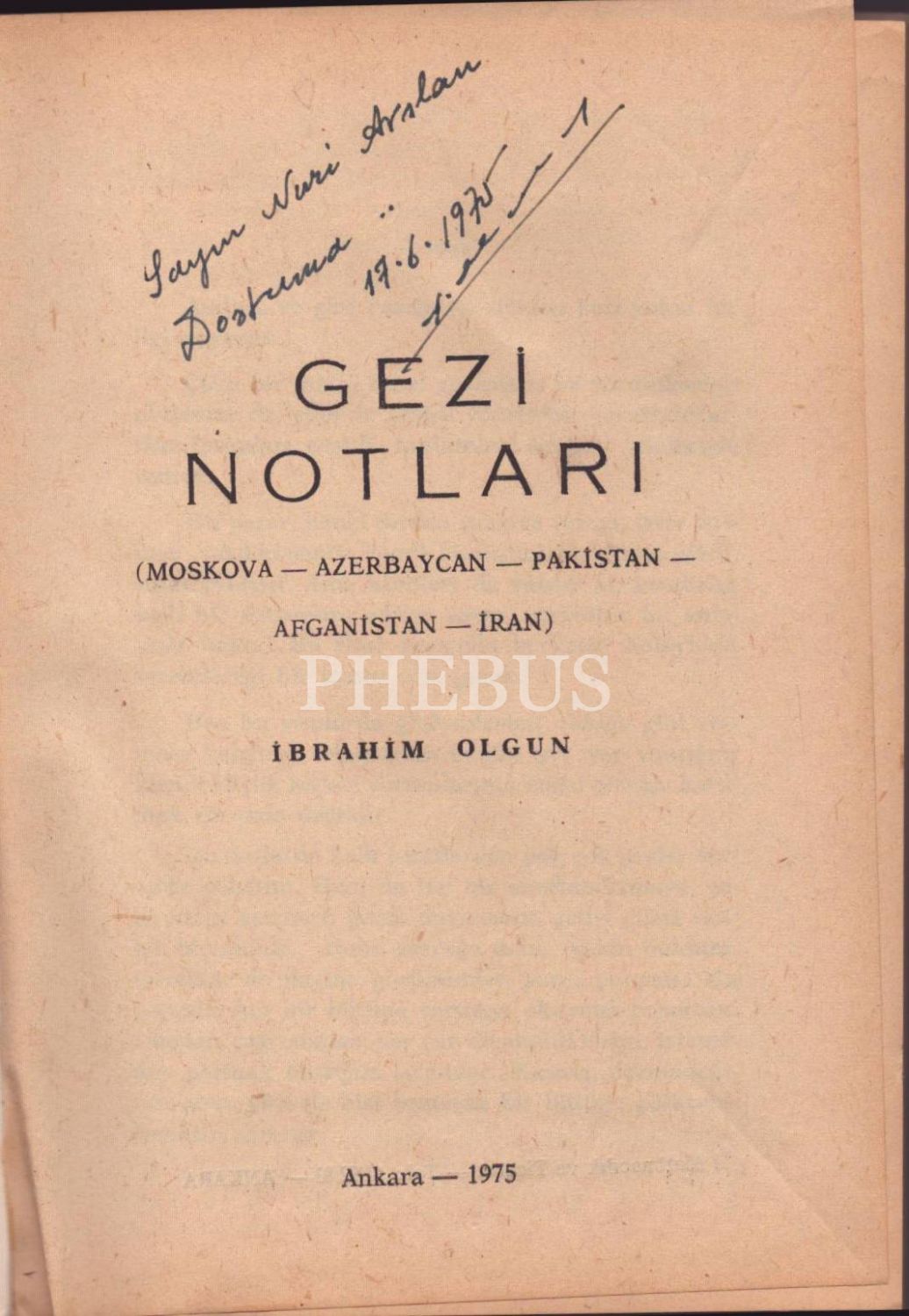 İbrahim Olgun´dan ithaflı ve imzalı GEZİ NOTLARI (Moskova - Azerbaycan - Pakistan - Afganistan - İran), İş Matbaacılık ve Ticaret, Ankara - 1975, 120 sayfa, 14x20 cm