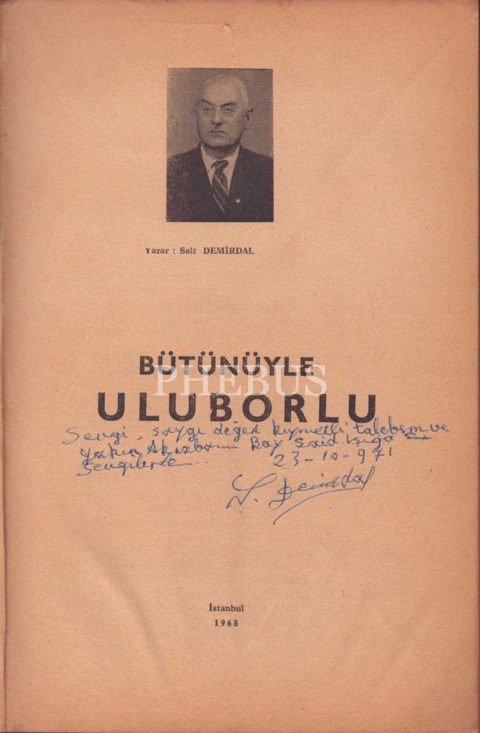 Sait Demirdal´dan ithaflı ve imzalı BÜTÜNÜYLE ULUBORLU "Monografi", Acar Matbaası, İstanbul - 1968, 577 sayfa, 16x23 cm