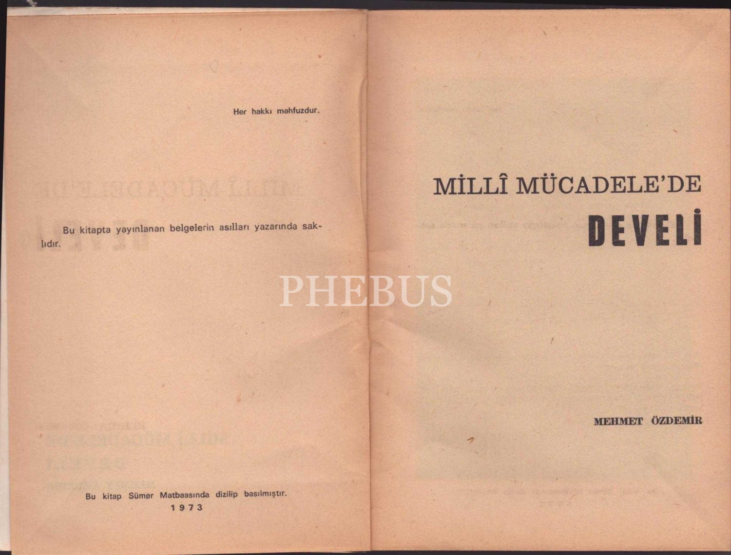 Yazarın eşi tarafından bir notla armağan edilmiş MİLLÎ MÜCADELE´DE DEVELİ, Mehmet Özdemir, Sümer Matbaası, 1973, 181 sayfa, 13x19 cm