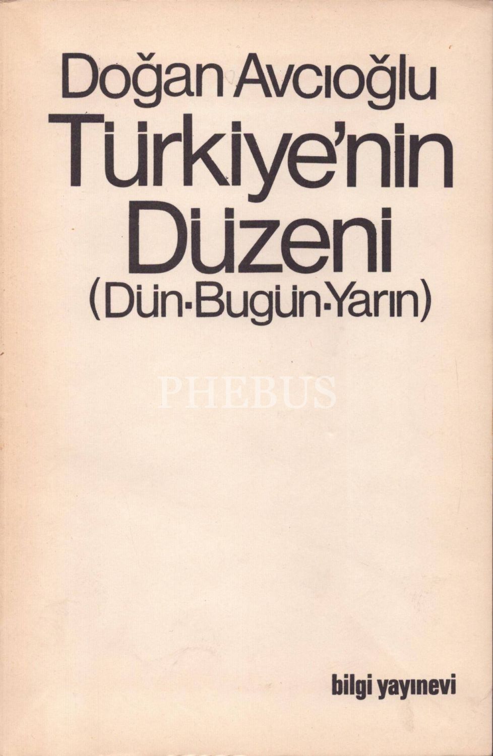 TÜRKİYE´NİN DÜZENİ (Dün-Bugün-Yarın) - Cilt 1, Doğan Avcıoğlu, Bilgi Yayınevi, Aralık 1969, 347 sayfa, 16x24 cm