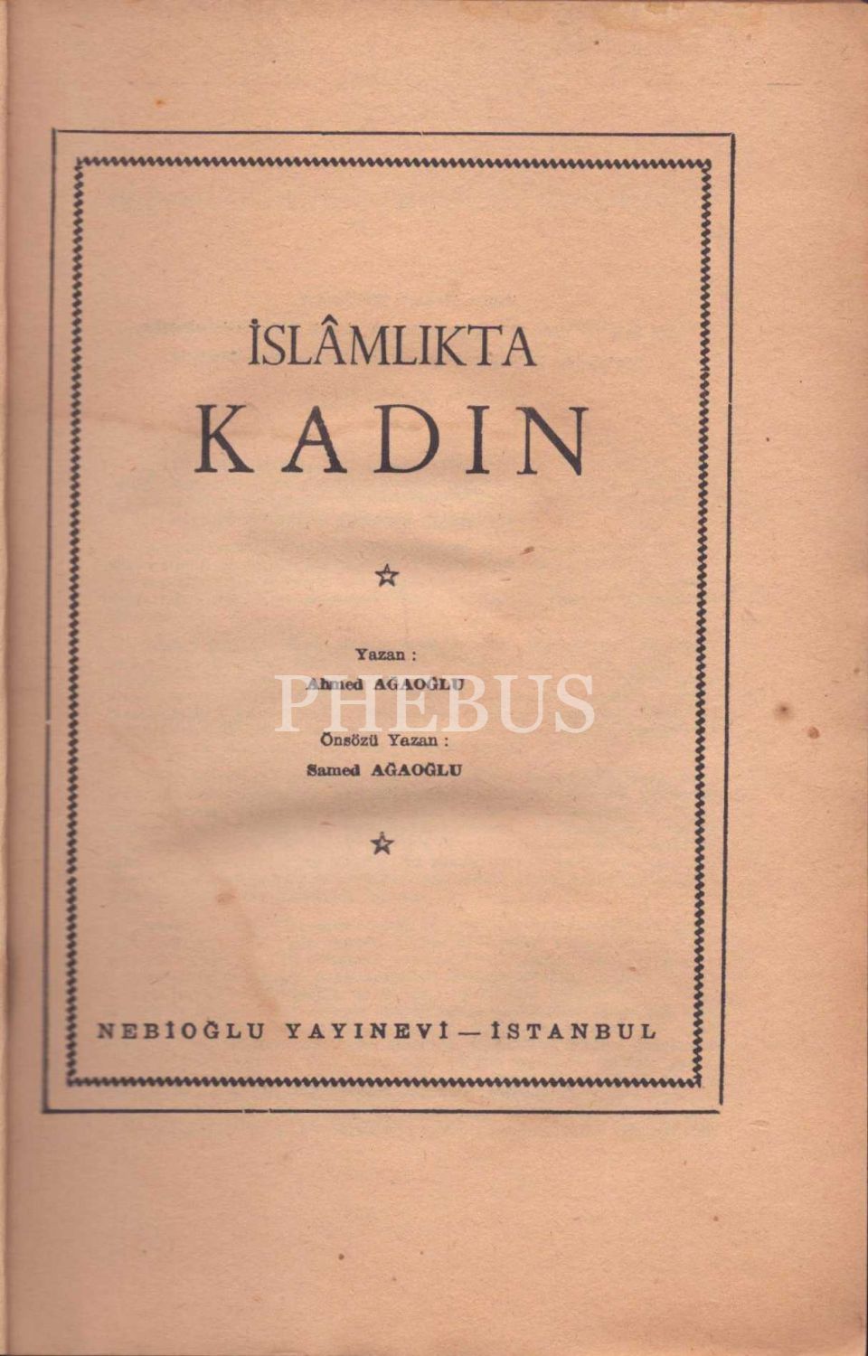 İSLÂMLIKTA KADIN, Ahmed Ağaoğlu, Nebioğlu Yayınevi, İstanbul, 53 sayfa, 17x24 cm