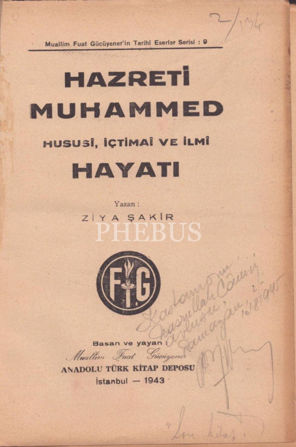 HAZRETİ MUHAMMED (Hususî, İçtimaî ve İlmî Hayatı), Ziya Şakir, Anadolu Türk Kitap Deposu, İstanbul - 1943, 239 sayfa, 15x21 cm