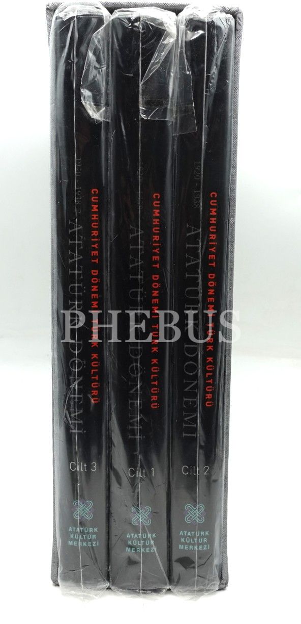Orjinal karton kutusunda ve açılmamış ambalajlarında 3 cilt takım CUMHURİYET DÖNEMİ TÜRK KÜLTÜRÜ: ATATÜRK DÖNEMİ (1920-1938), Atatürk Kültür Merkezi, 25x32 cm