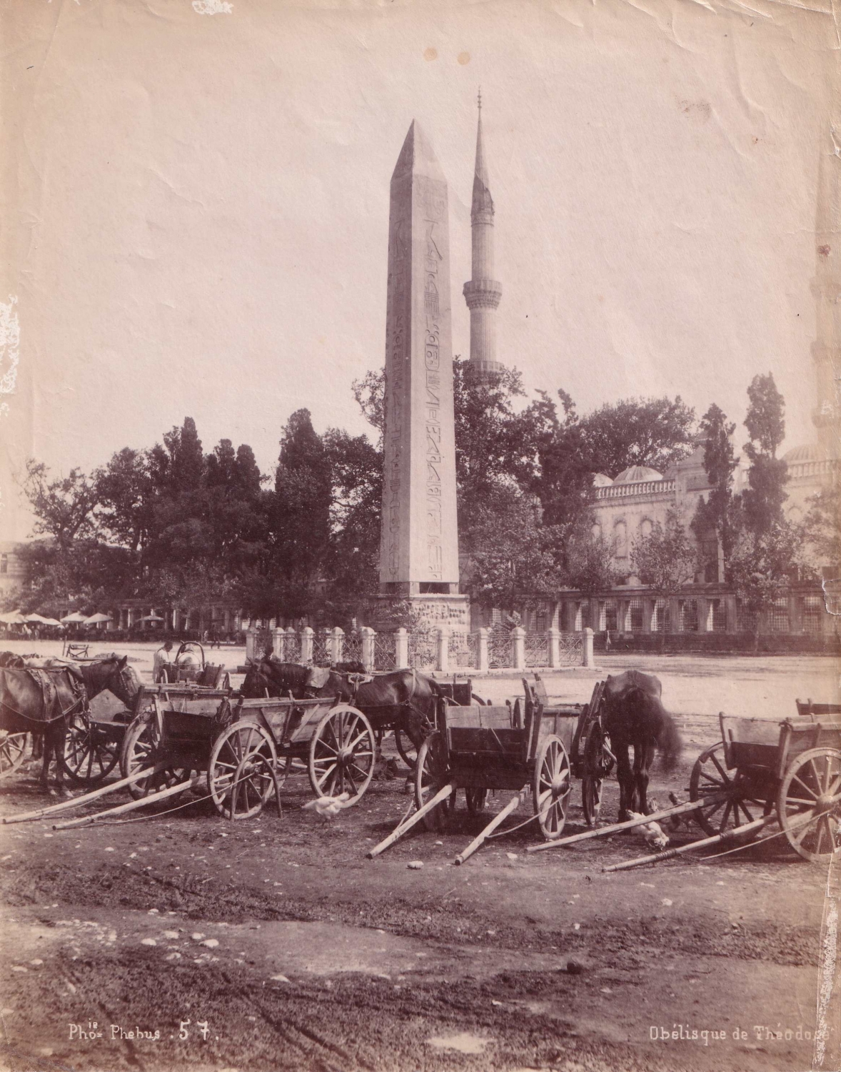 İstanbul Dikilitaş ve at arabaları, büyük boy fotoğraf, Photo Phebus, nadir, 25x19 cm