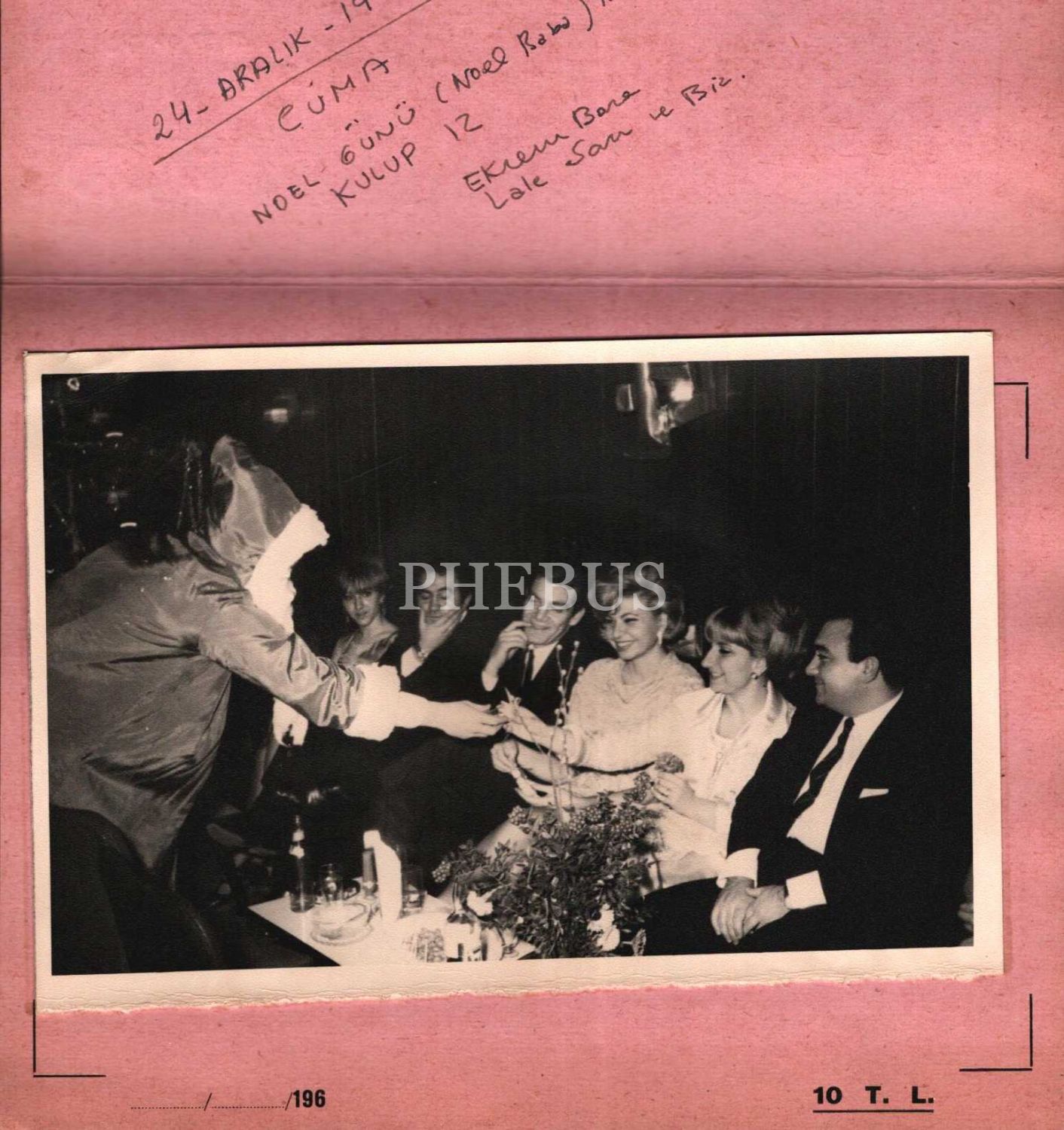 "Club 12 - Foto Lüks" yazılı kabında aralarında Ekrem Bora ve Lale Sarı´nın da bulunduğu topluluğa hediye dağıtan Noel Baba, 18x12 cm
