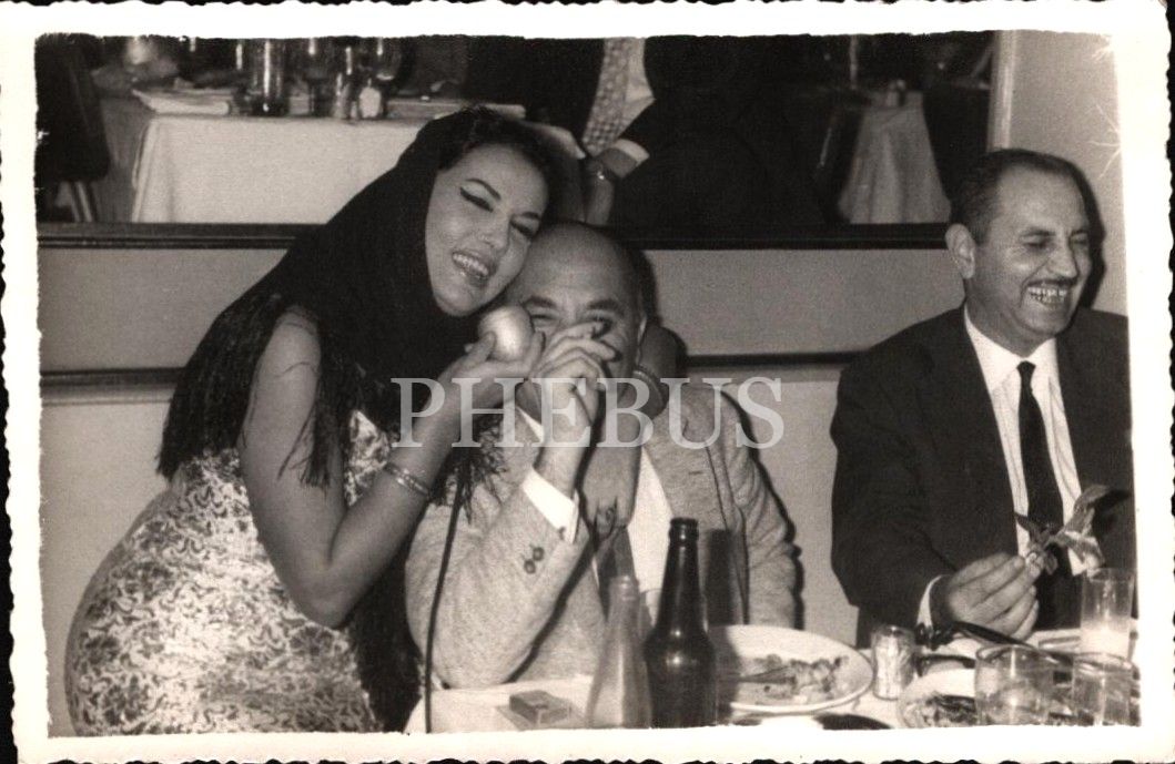 Mikrofonuyla seyircinin yamacına gelmiş bir şarkıcı, "Foto Ay - Beyoğlu" damgalı, 14x9 cm