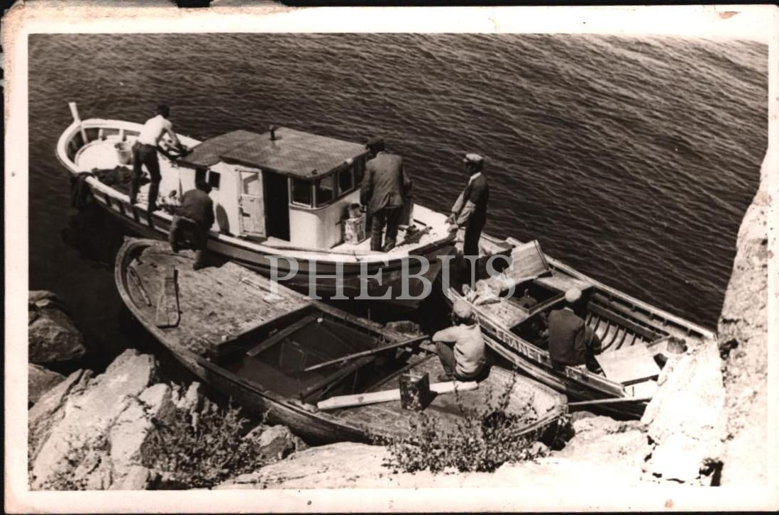 Kayalıklardan denize açılmaya hazırlanan kayıkçılar, 14x9 cm