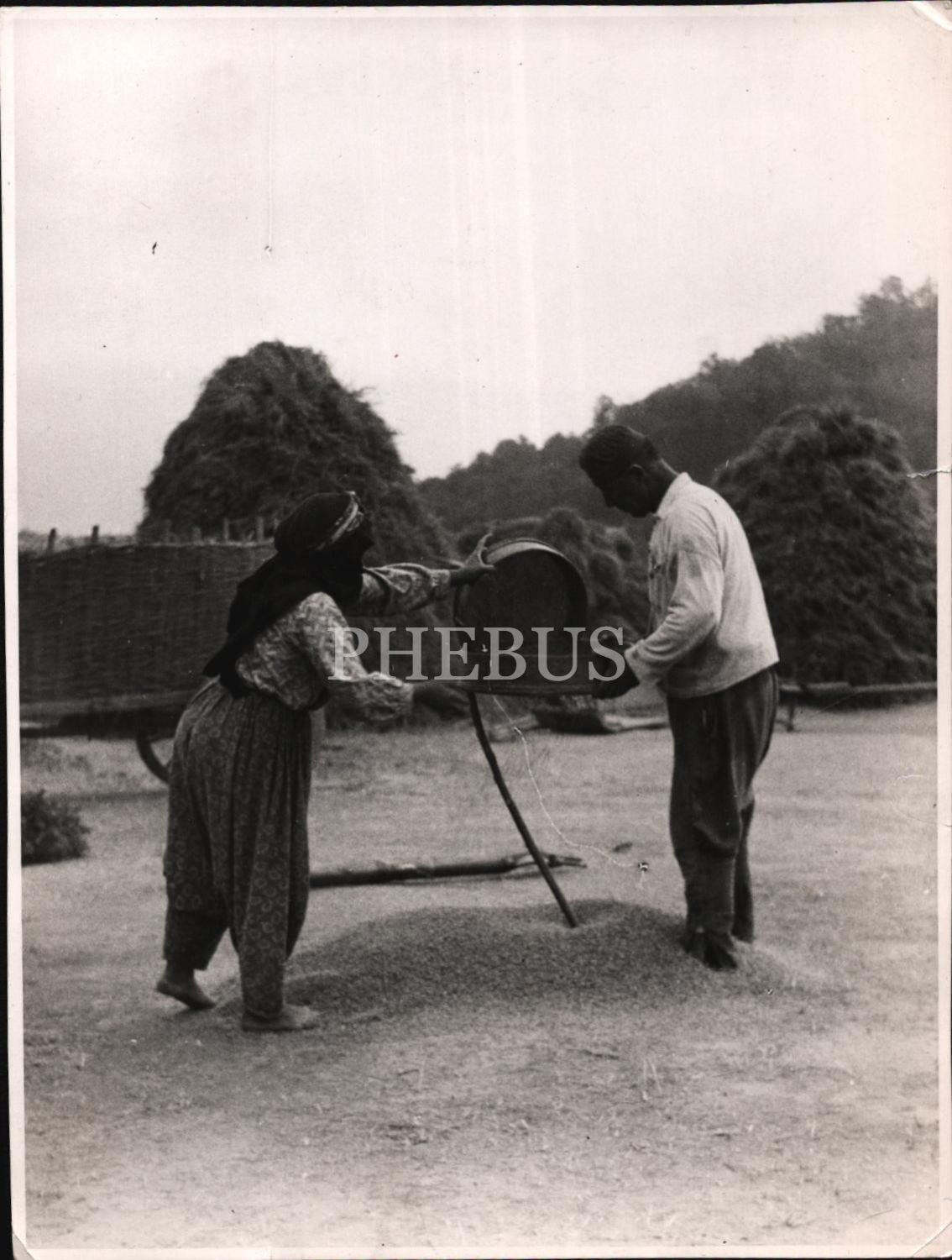 Buğday eleyen köylü çift, 14x19 cm