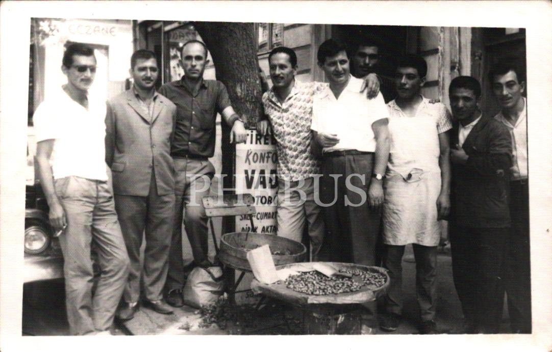 Seyyar fındıkçı ile hatıra fotoğrafı, "Foto Akşam - İst. / Mehmet Kırca" damgalı 14x9 cm