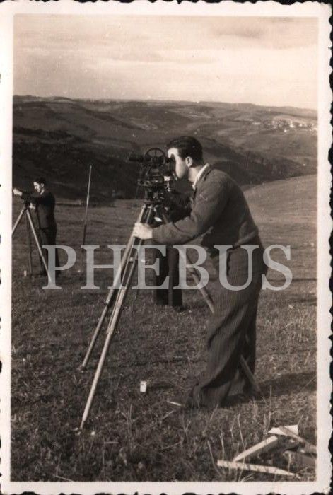 Arazi ölçümü yapan genç beyefendi, arka yüzü İngilizce açıklamalı ve imzalı, 6x9 cm