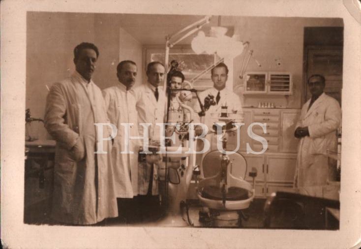 Diş muayenehanesinde poz veren doktorlar, 9x7 cm
