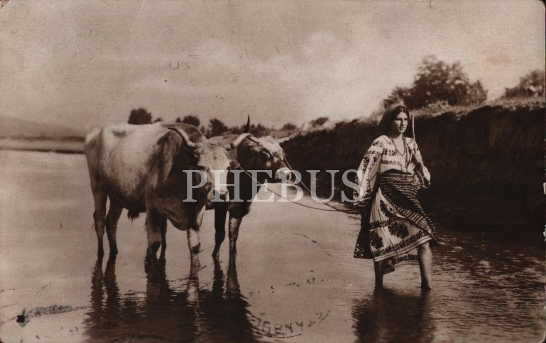 Öküzlerini dereden geçiren Bükreşli kadın, ed. C. Sfetea, Bucureşti, postadan geçmiş, 14x9 cm