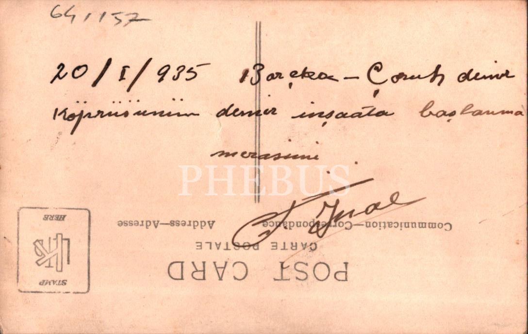 "20/I/935 Borçka - Çoruh deniz köprüsünün deniz inşaata başlama merasimi."