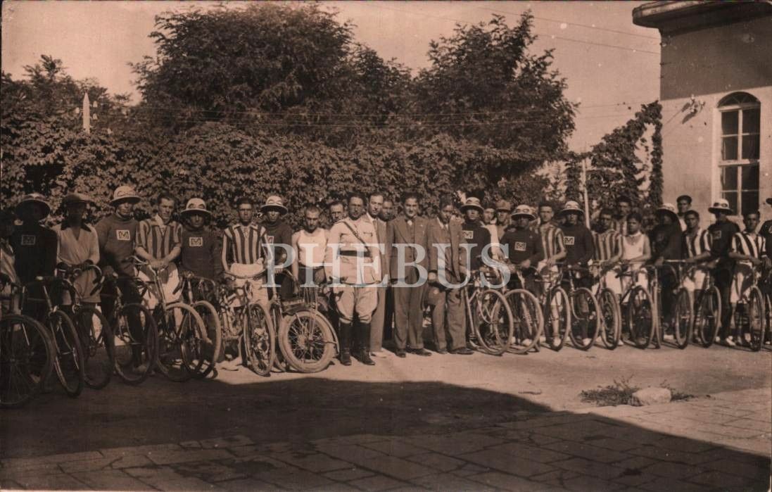 Türk Ocağı üyelerinin bisikletleriyle çektirdiği 17 Haziran 1934 tarihli hatıra fotoğrafı, arka yüzü açıklamalı, 14x9 cm