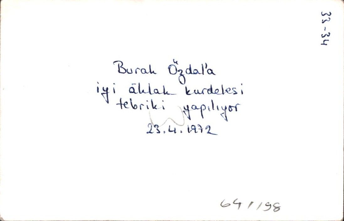 "Burak Özdal´a iyi ahlak kurdelesi tebriki yapılıyor. 23.4.1972"