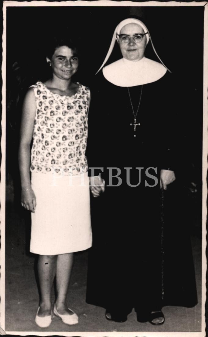 Rahibe ile hatıra fotoğrafı, "Foto İFA Hikmet - Beyoğlu / İstanbul" damgalı, 9x14 cm