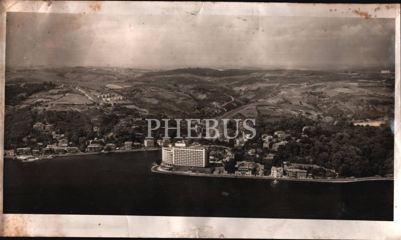 Havadan çekilmiş büyük boy Tarabya fotoğrafı, ortada Büyük Tarabya Oteli görülmekte, 46x25 cm
