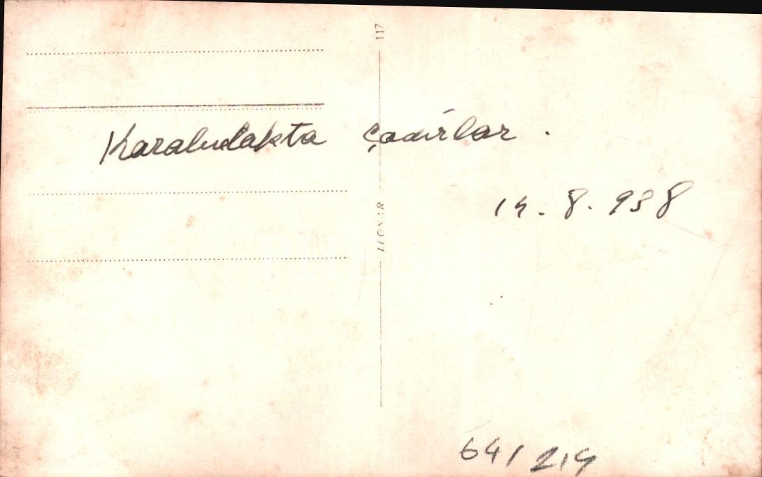 14 Ağustos 1938 tarihli çadırların kurulu olduğu bir mesire alanı hatırası, sol tarafta koyunlarını gezdiren bir çoban görülmekte, 14x9 cm