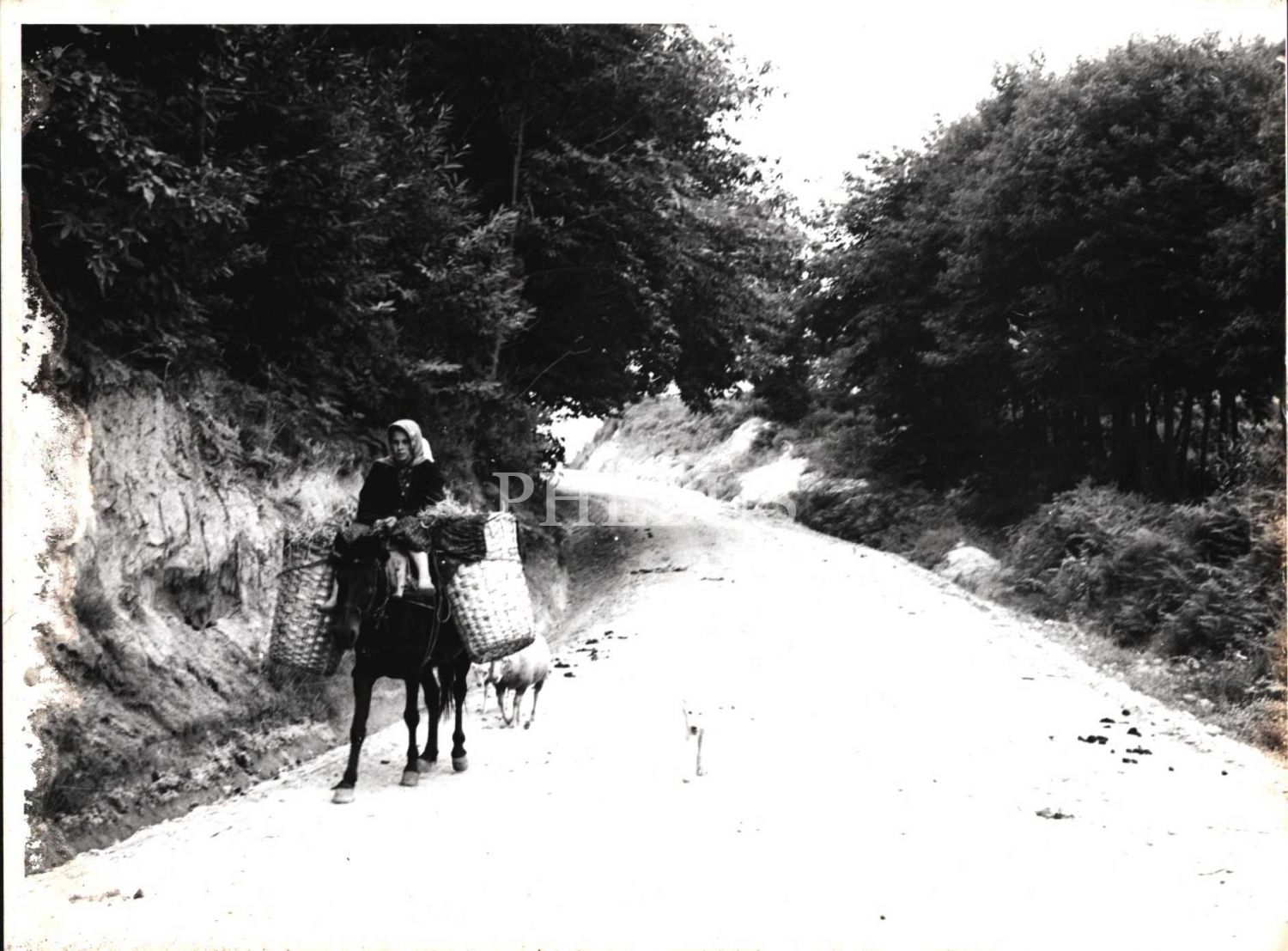 Doldurduğu heybelerini atına yükleyerek evine doğru yola çıkan bir köylü kadın, 24x18 cm