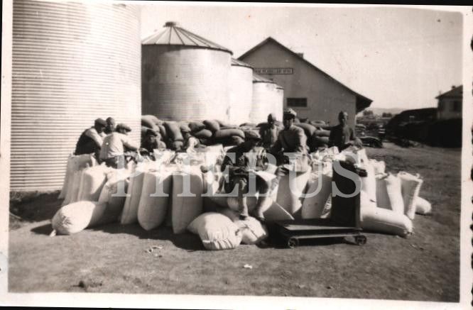 "Erzurum Toprak Mahsulleri Ofisi"nde buğday nakli ile görevlendirilmiş asker ve siviller, arka yüzü açıklamalı, 9x6 cm