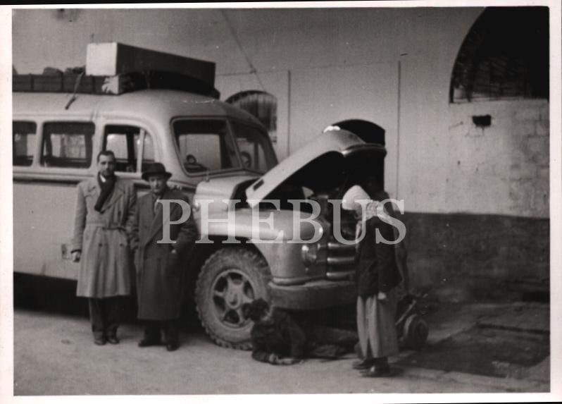 Minibüs tamir eden tamircilerle hatıra fotoğrafı, 10x7 cm