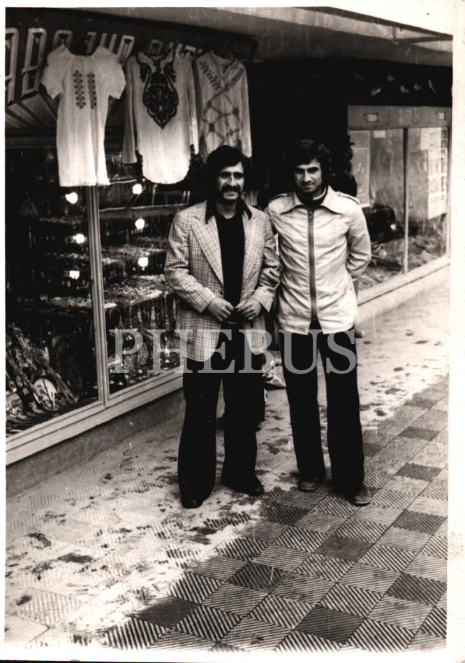 Bir takı dükkânı önünde iki beyefendi, 9x12 cm