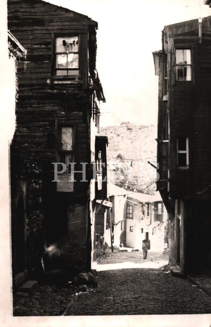 Arnavut kaldırımlı eski bir sokağın görünümü, 9x14 cm