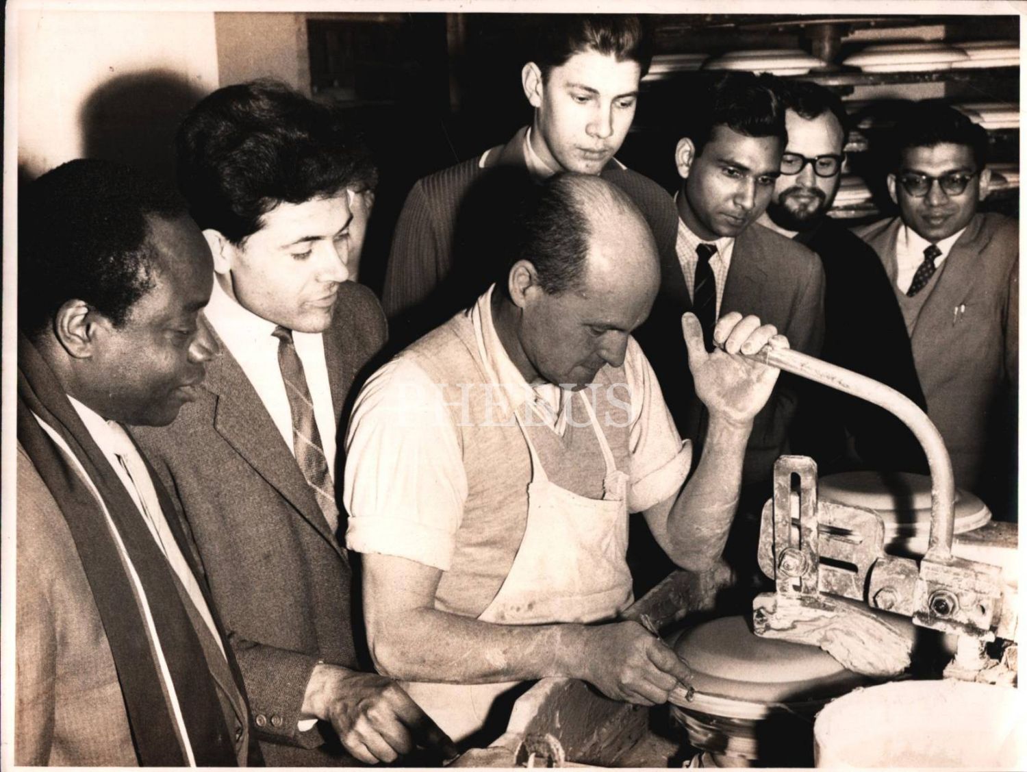 Tabak imal eden ustayı seyreden beyefendiler, "Photo by Wedgwood P. R. Dept" damgalı, 21x16 cm