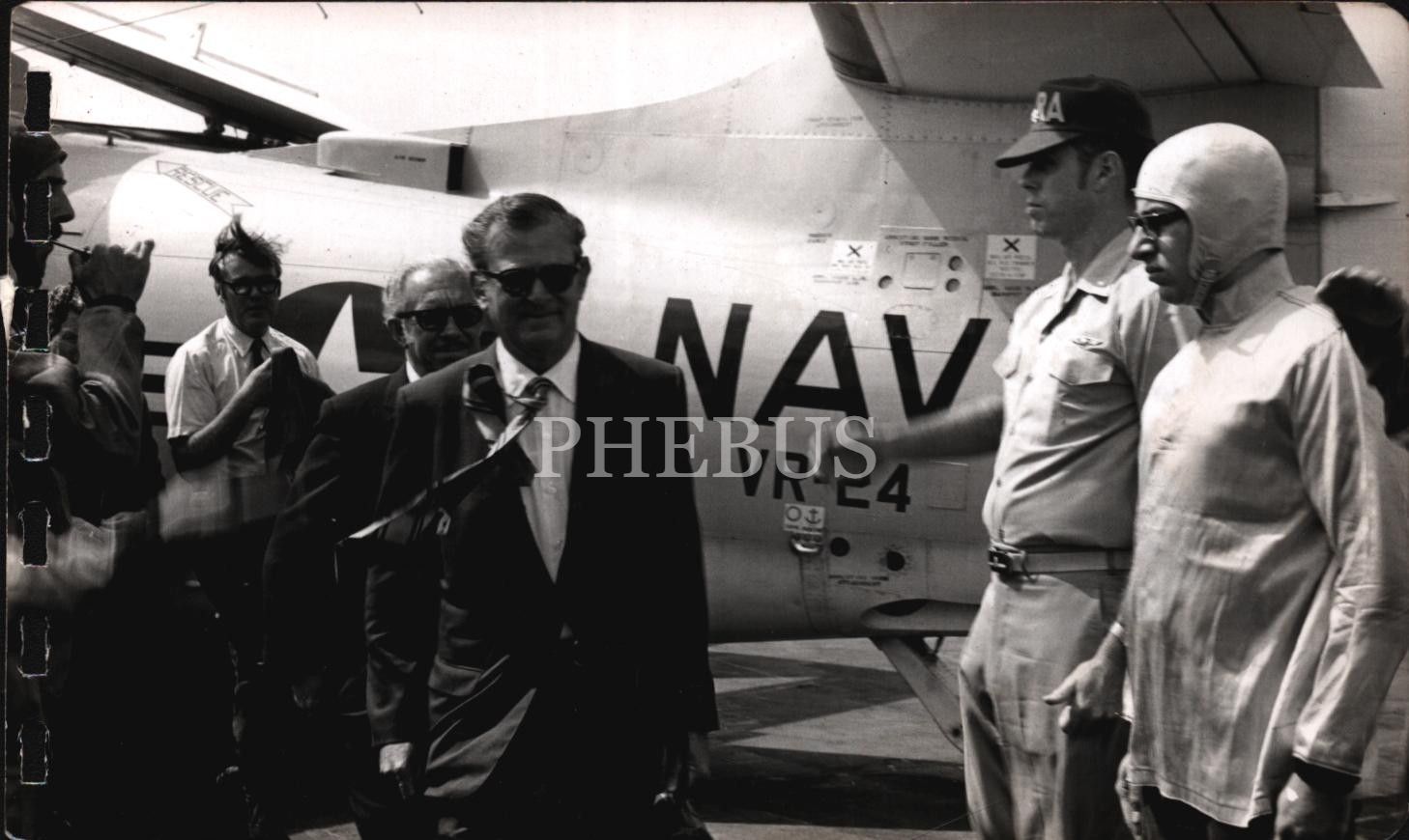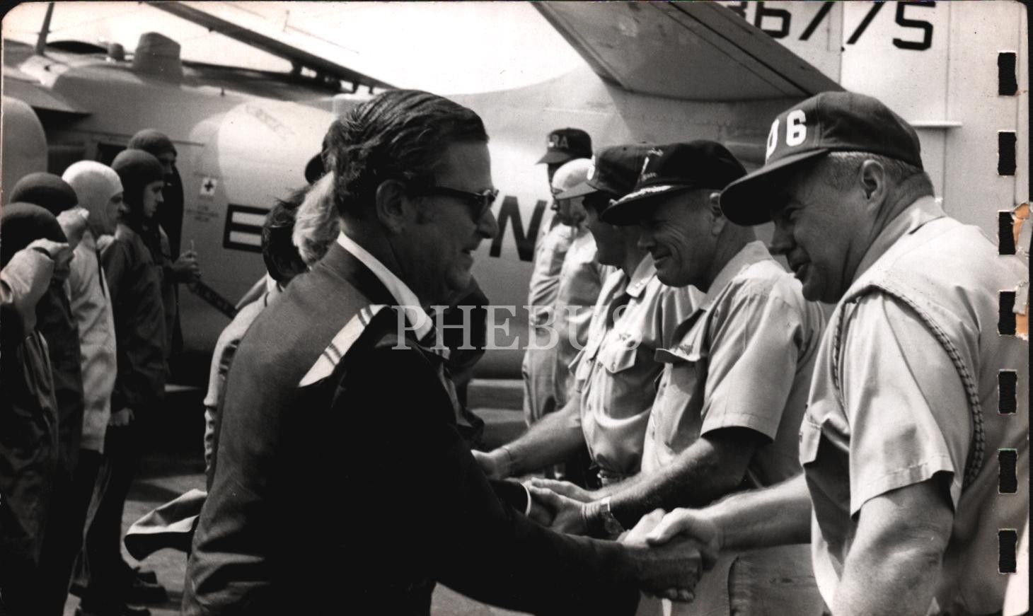 Uçaktan inip karşılama ekibiyle selamlaşan bir beyefendinin arkalı önlü 2 adet fotoğrafı, 19x11 cm