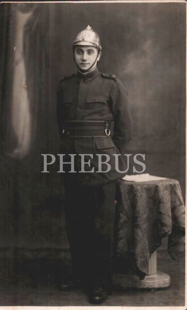 Gümüş miğferli Romanya askerinin hatıra fotoğrafı, 1 Nisan 1932, 9x14 cm