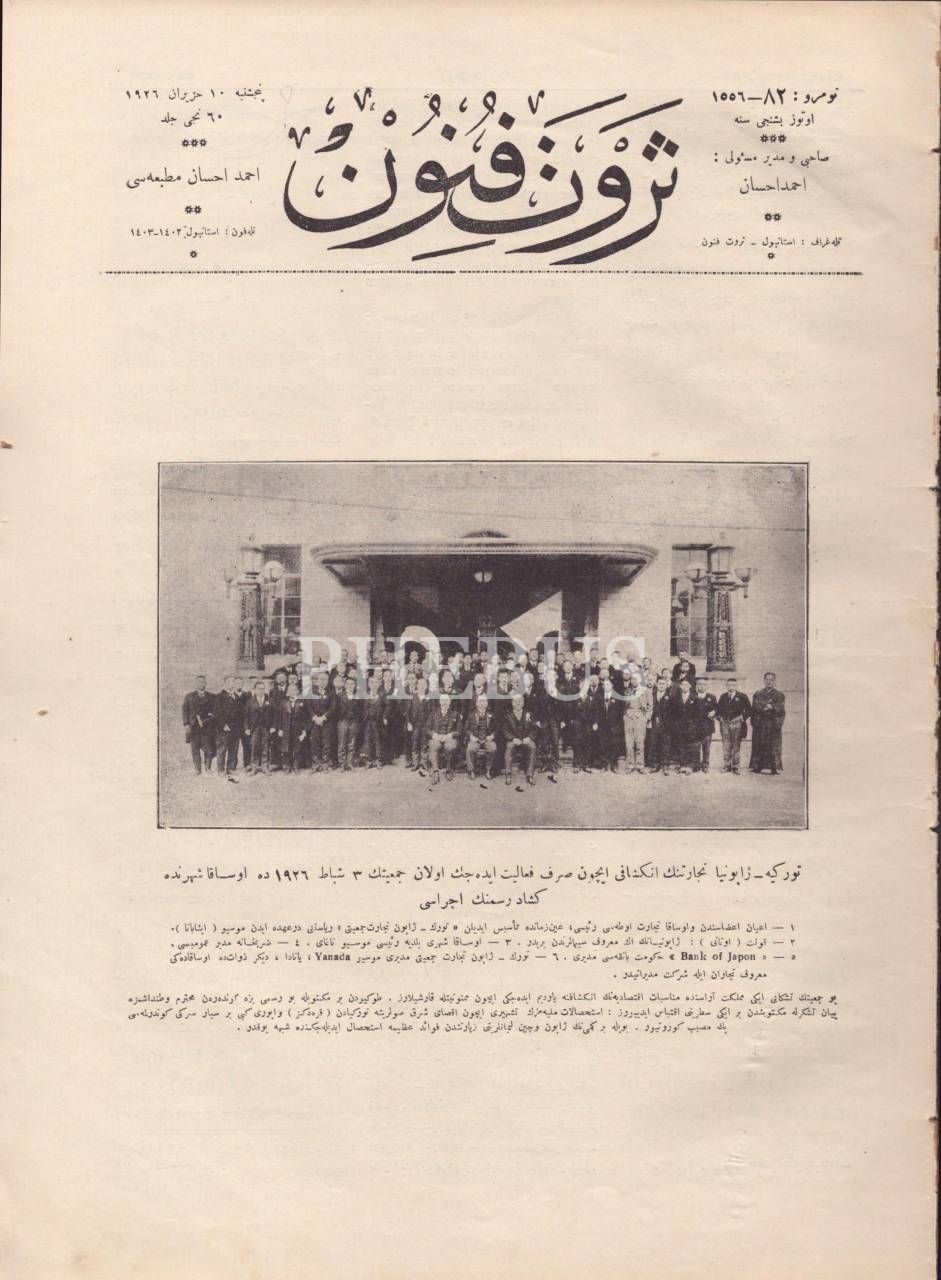 SERVET-İ FÜNUN dergisinin, Osaka´da bulunan Türkiye-Japonya ticareti faaliyet cemiyetine ait kapak görseliyle 82. sayısı, 1 Haziran 1926, 24x32 cm